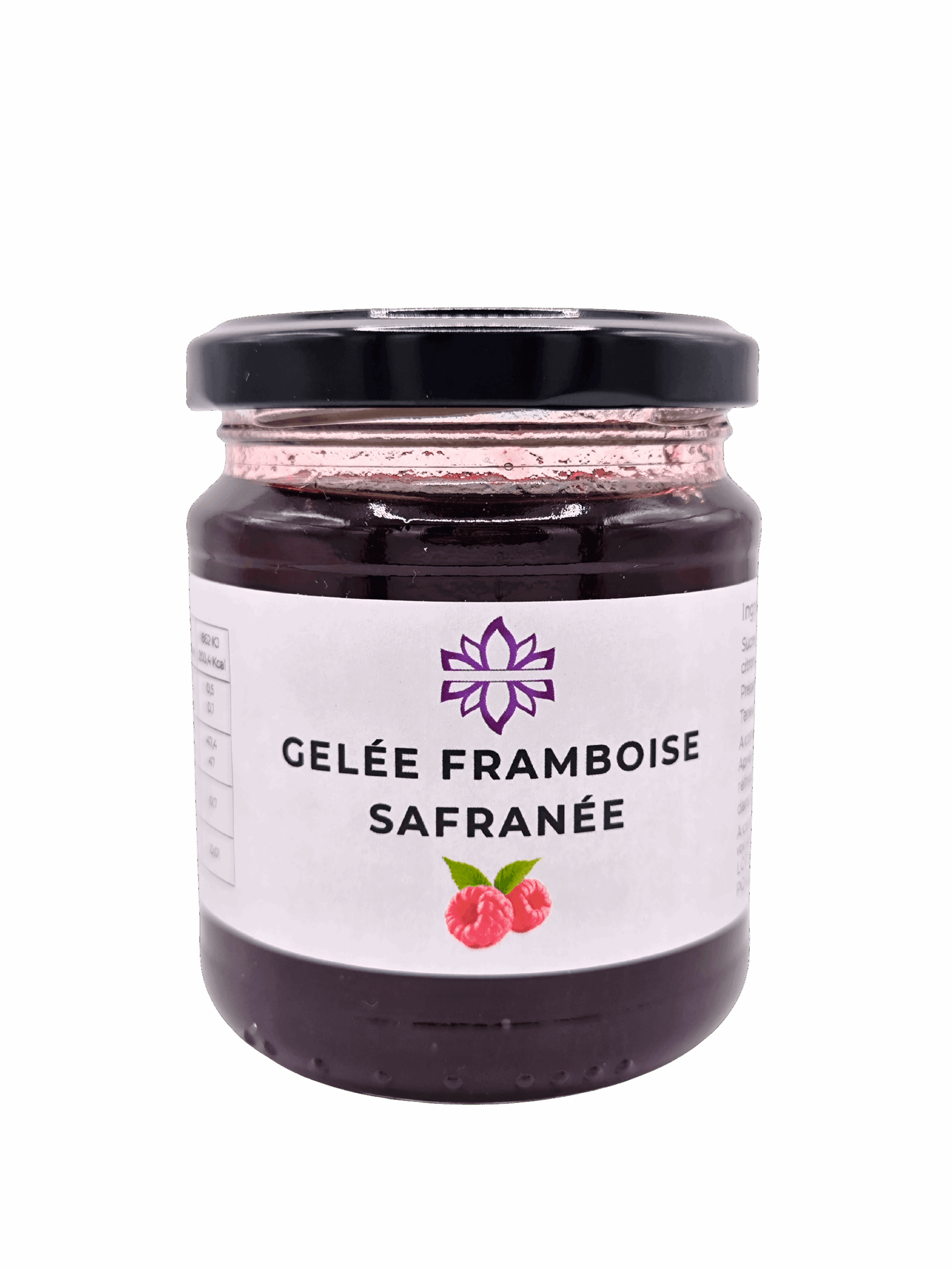 Gelée artisanale framboise safranée, 100 % naturelle. Saveur fruitée et épicée, parfaite pour desserts, tartines ou cadeaux gourmets.